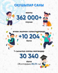 Бұл өткен жылмен салыстырғанда 10 мыңға артық. Алғаш рет мектеп табалдырығын 30 мыңнан астам бала аттамақ.
