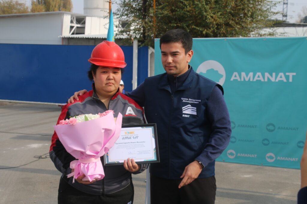 Өнеркәсіп және құрылыс министрлігінен арнайы марапат қағазын алған Асланхан Алмасханұлы: «Мен бүгін таңертең ғана түнгі ауысымнан шыққан едім. Марапаттайды деп ойламадым. Бетондарды араластыру цехында слесарь болып жұмыс жасаймын. Еңбегімді елеп-ескеріп, марапатқа ұсынып жатқанына ұжым басшылығына алғысым шексіз», – деді