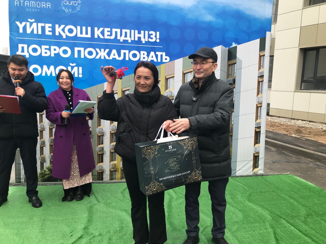 Одан кейін пәтер кілттерін салтанатты табыстау рәсімі өтті. Аудан басшысы олардың әрқайсысына баспана кілтін ғана емес, сонымен бірге мерекеге орай сыйлық та табыс етті. Ұлттық дәстүрімізге сай ардақты аналар шашу шашқаннан кейін шараға қатысушылар үй ішіне кіріп,бөлмелерді аралап көрді. Ал бұл сәтті ұзақ жылдар бойы күткен жаңа пәтерлердің бақытты иелері қуаныштан көздеріне жас алды. Олардың арасында осы күнді 12 жыл күткен үш баласы бар жалғыз басты ана, 22 жыл күткен Чернобыль апатының ардагері Жалғасбай Раметов сынды жандар бар.