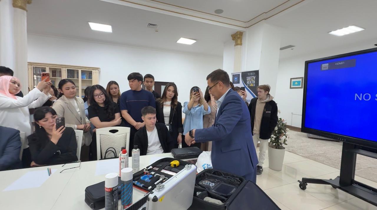 Конференцияның тәжірибелік бөлімі қатысушылардың ерекше қызығушылығын тудырды. «KazPromEducation» ЖШС құрылтайшысы Нұрболат Рысалыұлы өндірістік қауіпсіздікке арналған түрлі заманауи құрал-жабдықтарды таныстырып қана қоймай, олардың жұмыс істеу принциптерін студенттер мен магистранттарға тәжірибе жүзінде көрсетіп берді. Мұндай формат жас мамандардың кәсіби қызығушылығын арттырып, теориялық білімдерін нақты өндірістік тәжірибемен ұштастыруға мүмкіндік берді.