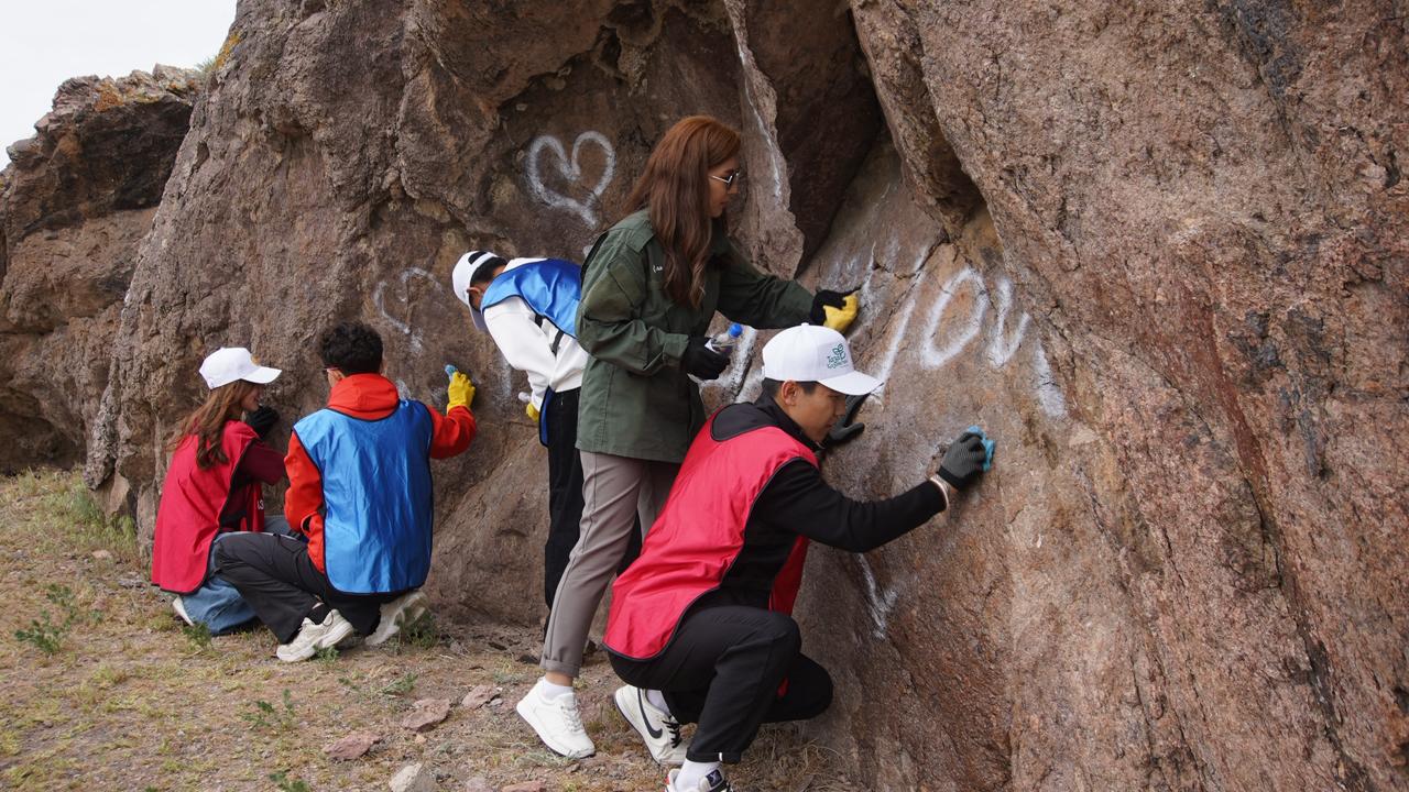 Тазалық жұмыстары кезінде қатысушылар қоқыс жинап қана қоймай, шатқалдағы жартастарға жазылған бейберекет жазуларды өшіруге де атсалысты. Ұйымдастырушылардың айтуынша, көптеген туристер бұл жерде өздері туралы естелік қалдыруға тырысады. Соның салдарынан жартастарда түрлі есімдер мен махаббат жайлы жазулар көбейген.