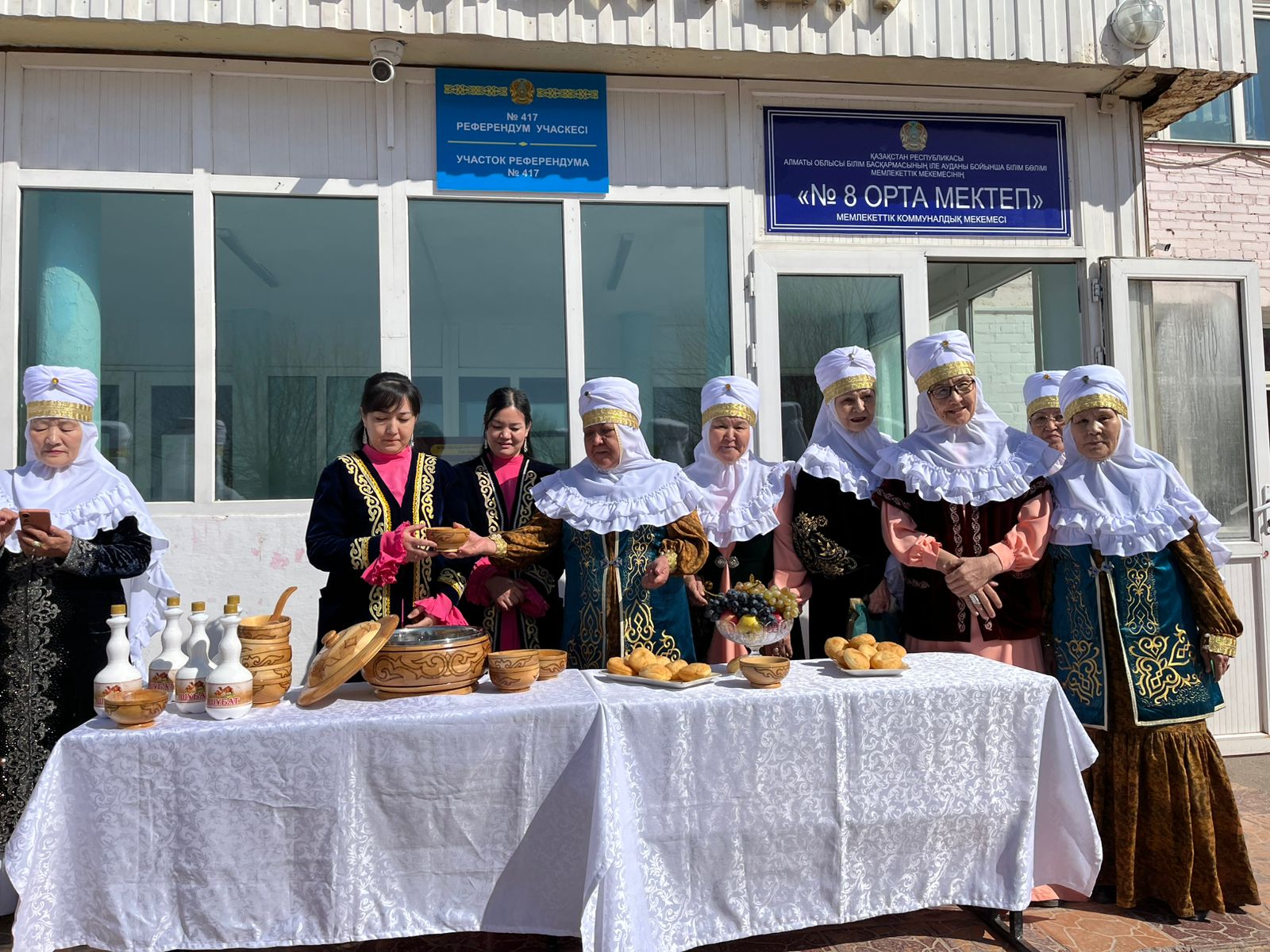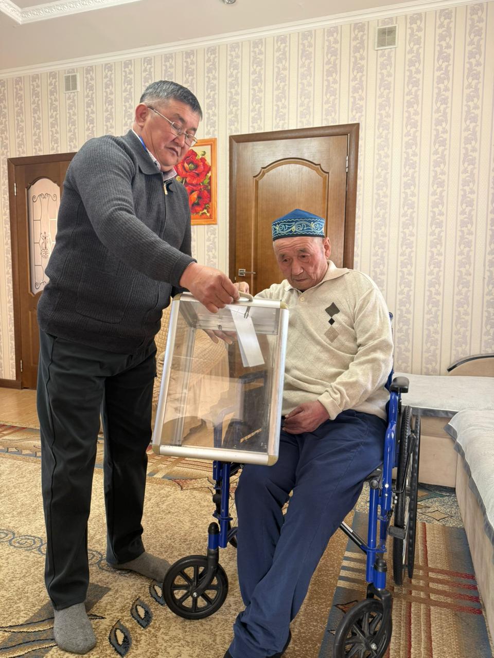 Комиссия мүшелері жас жұбайларды жылы қарсы алғаннан кейін, олар тіркеу рәсімінен өтіп, бюллетеньдерін алды. Сол сәтте учаскеде болған Есіктік тұрғындардың айтуынша, олардың бір-біріне деген ілтипаты мен қамқорлығы бірден көпшіліктің ықыласын оятып, жүздеріне күлкі сыйлады.